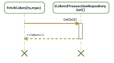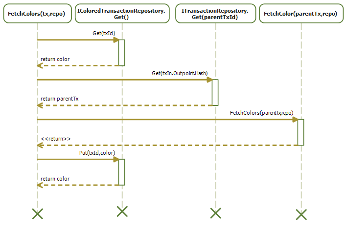 Once FetchColors has resolved the color of the parent’s recursively, it computes the transaction color, and caches the result back in the IColoredTransactionRepository.